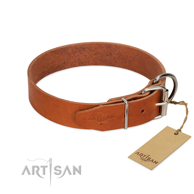 Have you ever asked yourself which equipment for daily walking would your dog choose if he could? We bet, your answer is as comfortable as possible. So, certainly, as a caring and loving owner, you are trying to get the best gear for your canine to walk with pleasure. This FDT Artisan Tan Leather Collar will be the perfect match.