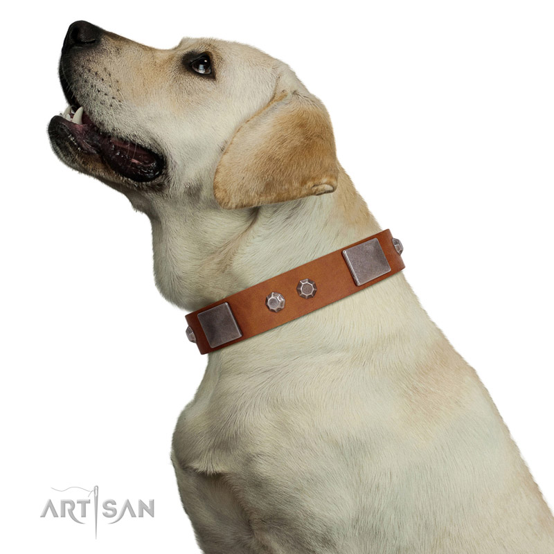 FDT Artisan aims to offer stylish and comfortable handmade leather collars to our four-legged best friends for secure walks! Such as this gorgeous tan leather dog collar made in