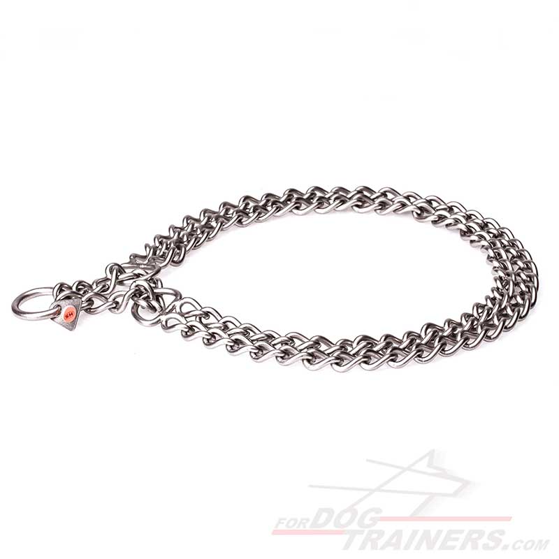 • “Double Chain” Brushed Stainless Steel Dog Collar with 1/9 inch (3 mm) link diameter