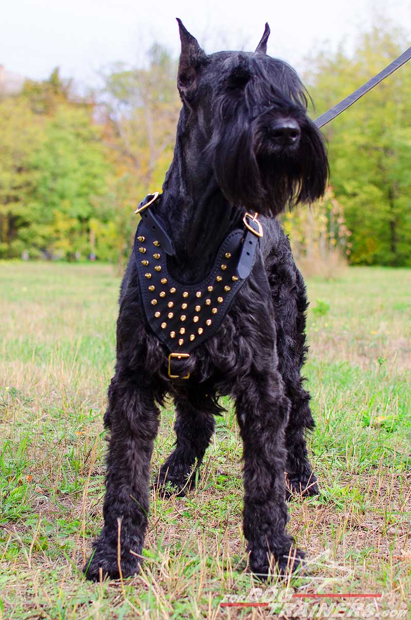 • Designer Dog Harness with Brass Spikes for Walking and Training